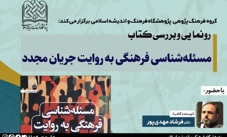 به گزارش خبرگزاری خبرآنلاین به نقل از اداره روابط عمومی و اطلاع‌رسانی پژوهشگاه فرهنگ و اندیشه اسلامی، آئین رونمایی و بررسی کتاب «مسئله‌شناسی فرهنگی به روایت جریان مجدّد» توسط گروه فرهنگ‌پژوهی پژوهشگاه به صورت حضوری و مجازی برگزار می‌شود.